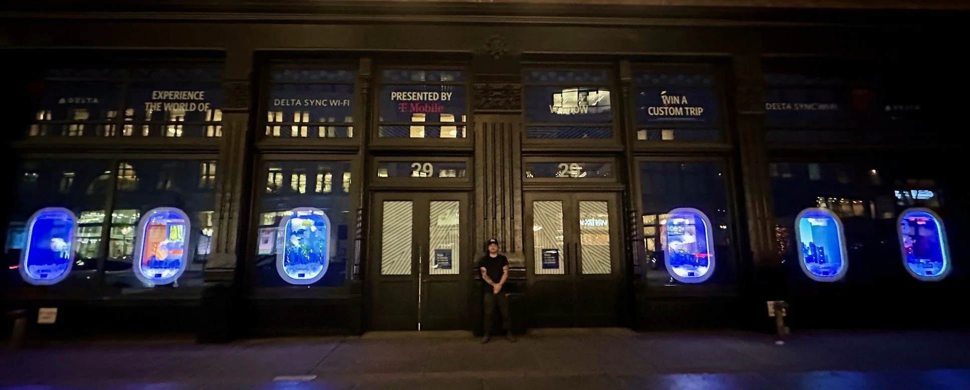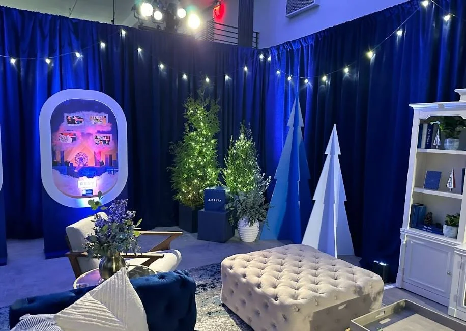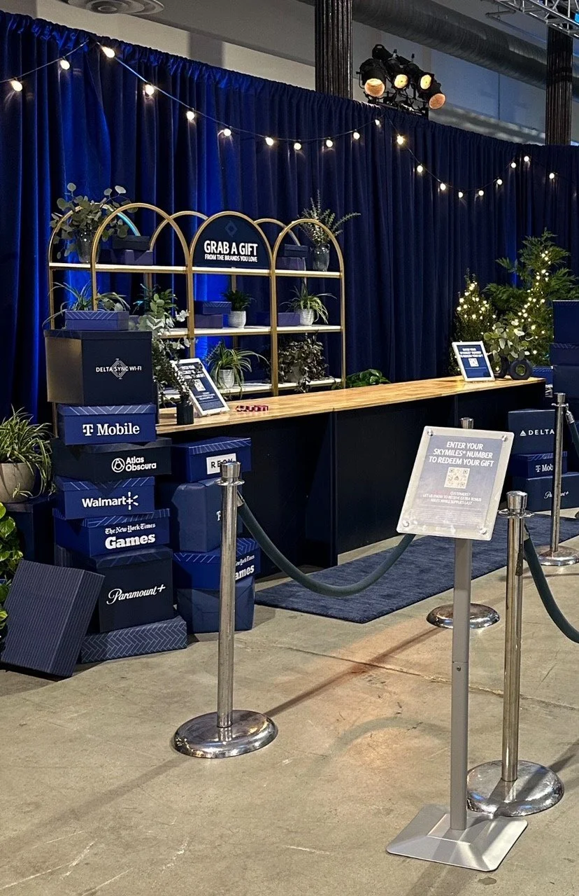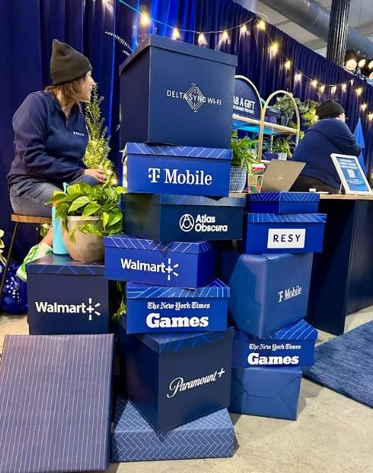 Results: Our activation was a full venue take over at Iron23 using over 40’x40’ of their raw space, transforming it into the world of Delta Sync while ensuring we had a monumental focus on their premier partners. T-Mobile, Atlas Obscura, Walmart +, Paramount +, New York Times Games and Resy. The exterior of the space was fully wrapped in Delta and Partner creative, while executing (6) custom window diorama build outs. Interactive touchpoints inside included seamless registration through QR development to sign up to win a free domestic trip through Delta, Lounge Area by Paramount + to view their new streaming service, elevated and catered beverage station, custom holiday calligraphy cards and a personalized gifting station.